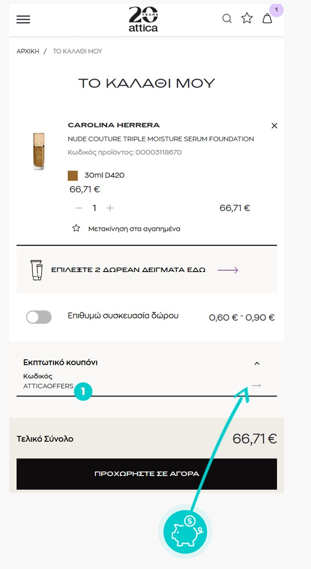 Αντιγράψτε ή σημειώστε τον εκπτωτικό κωδικό και κάντε κλικ στο κουμπί "ΣΤΟ ΚΑΤΑΣΤΗΜΑ". Στη συνέχεια θα ανακατευθυνθείτε απευθείας στο e-shop του atticadps.gr.