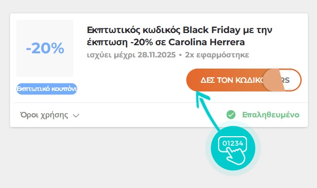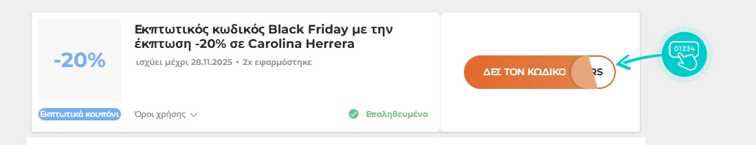 Επιλέξτε έναν συγκεκριμένο εκπτωτικό κωδικό στην ιστοσελίδα μας που θέλετε να χρησιμοποιήσετε στο e-shop atticadps.gr. Κάντε κλικ στο πορτοκαλί κουμπί "ΕΜΦΑΝΙΣΗ ΚΩΔΙΚΟΥ".
