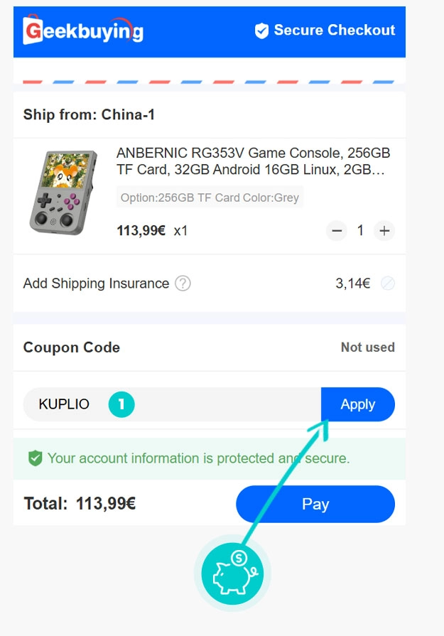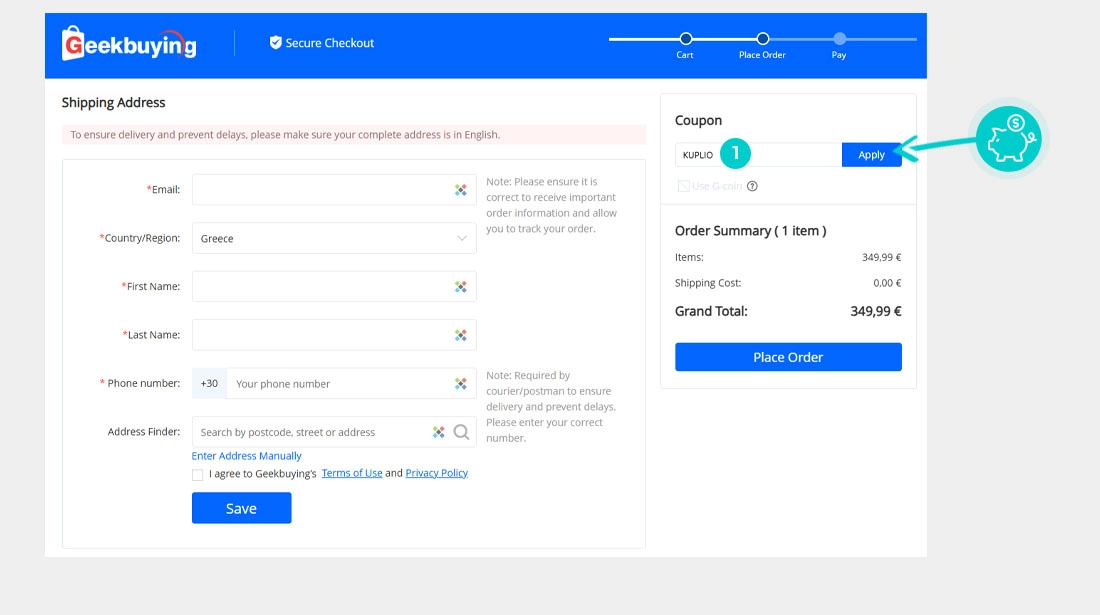 Δεν ξέρετε πώς ακριβώς λειτουργούν οι κωδικοί έκπτωσης Geekbuying; Σας προσφέρουμε έναν γρήγορο και εύκολο τρόπο για να εφαρμόσετε κωδικούς έκπτωσης κατά τις αγορές: