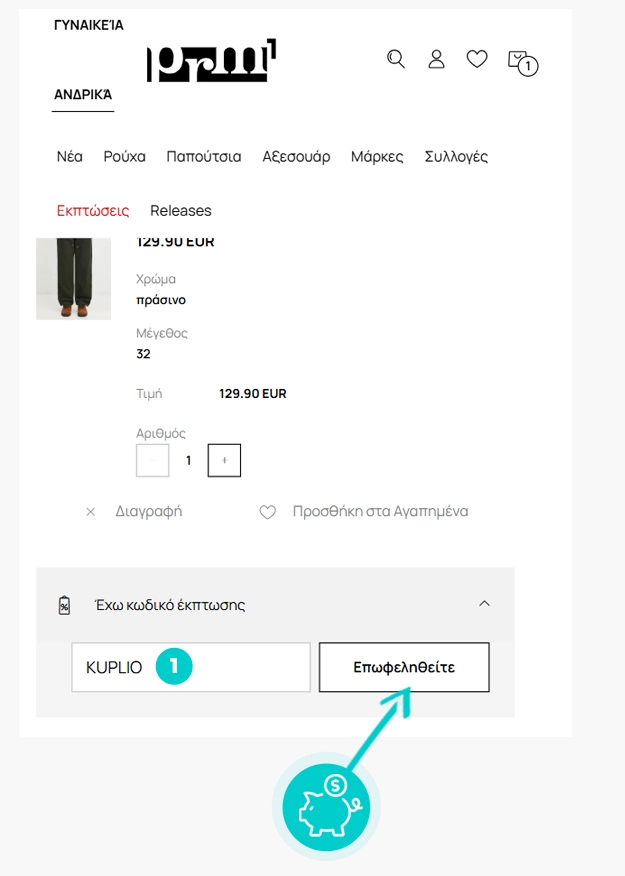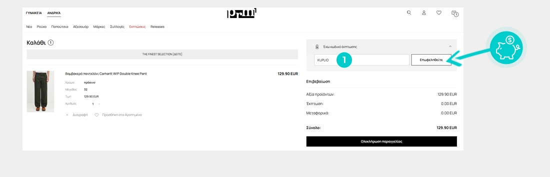 Μπορείτε να εφαρμόσετε τον εκπτωτικό κωδικό σε προϊόντα χωρίς έκπτωση, υπάρχουν επίσης εκπτωτικοί κωδικοί που μπορούν να εφαρμοστούν σε προϊόντα με έκπτωση. Μπορείτε να βρείτε περισσότερες πληροφορίες στους όρους και τις προϋποθέσεις του e-shop.