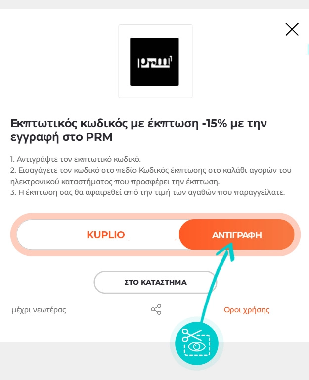 Αντιγράψτε ή σημειώστε τον εκπτωτικό κωδικό και κάντε κλικ στο κουμπί "ΣΤΟ ΚΑΤΑΣΤΗΜΑ". Στη συνέχεια θα ανακατευθυνθείτε απευθείας στο e-shop prm.com/gr.