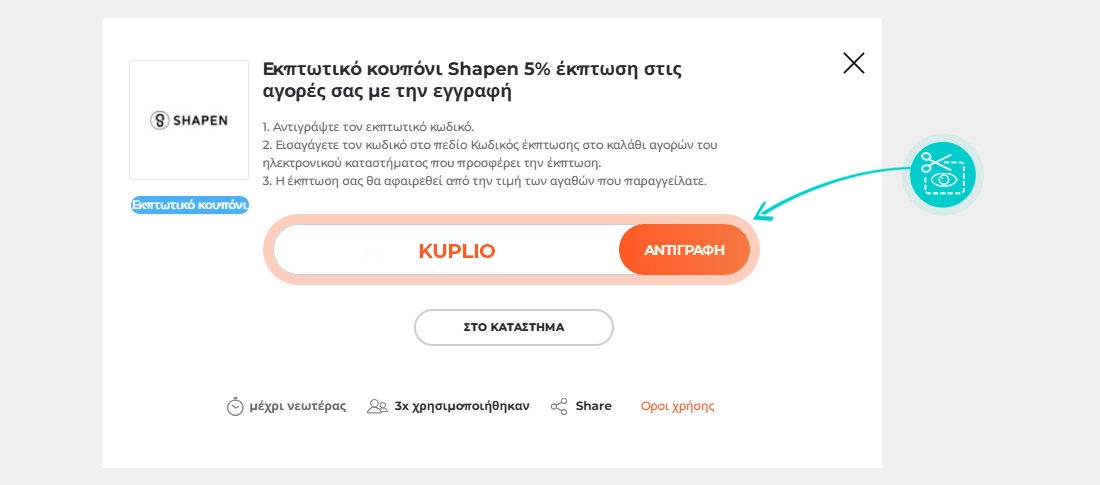 Εάν το ηλεκτρονικό κατάστημα παρέχει εκπτωτικό κωδικό, αυτός θα καταχωρηθεί στην ιστοσελίδα του ηλεκτρονικού καταστήματος ή θα αποσταλεί στο newsletter ή θα δημοσιευτεί στην ιστοσελίδα μας KUPLIO.gr.